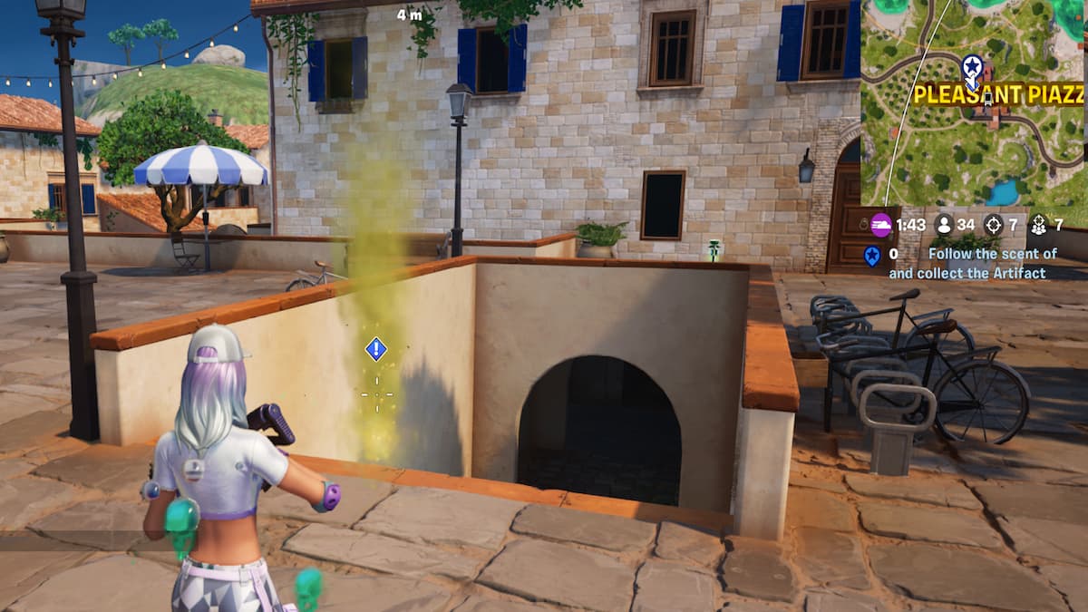 您会在宜人广场的西北侧看到一朵散发着臭味的绿色云朵。它通向楼梯,进入其中一间商店。继续跟踪直到到达厨房,您会在冰箱顶部找到神器(一个绿色网球)。收集起来,就可以进入最后一步了!