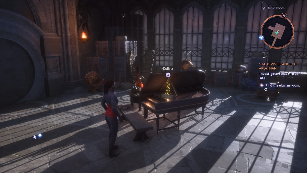 门后面是音乐室,里面装满了箱子和物品,你可以在面纱卫士的旅程中收集这些物品。这个房间里的钢琴顶部还有一个手抄本条目,它会奖励你少量的经验值,让你更接近完成每一个条目。如果您仍需要开始解决,您可以在图书馆内的房间另一侧完成另一个谜题。你不仅想完成这些谜题,还可以在灯塔中找到两个隐藏的宝箱,等待给你额外的奖励。