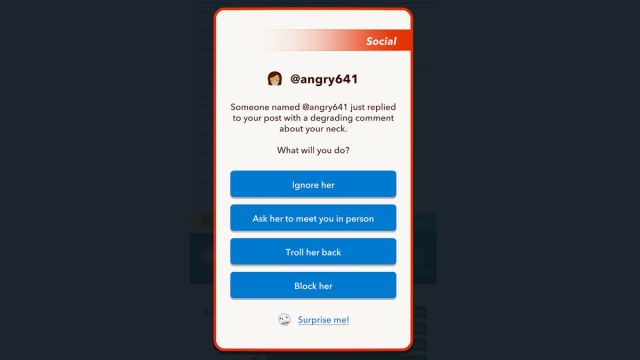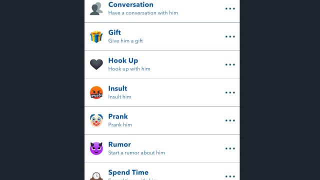 要侮辱某人,请进入任何可以选择其他人的菜单,无论是您的家人、朋友、同学还是同事。点击它们打开另一个菜单,然后向下滚动并选择侮辱行动。