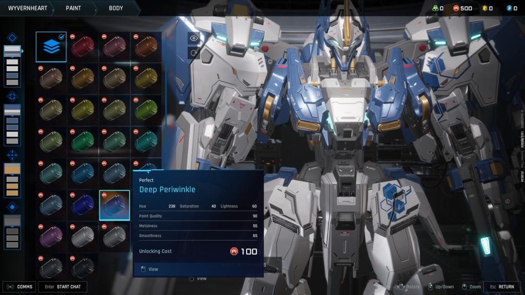 皮肤是我最喜欢的改变机甲视觉外观的方式。然而,现在的选择有些有限,这使得油漆非常有用。它们易于使用,没有任何限制,并且可供免费玩家使用。请记住,当您尝试将图案和徽章放在前锋上时,它们有一定的限制。