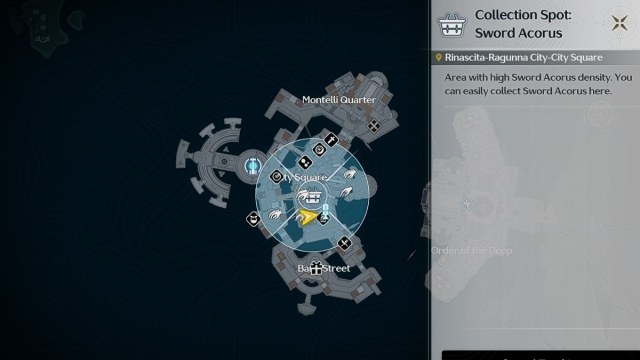 拉古纳市拥有高密度的菖蒲剑,当您点击菖蒲剑时,您可以使用收集点功能快速追踪。这里是拉古纳市某一地区的所有地点。在城市中心总共可以找到13把剑菖蒲。