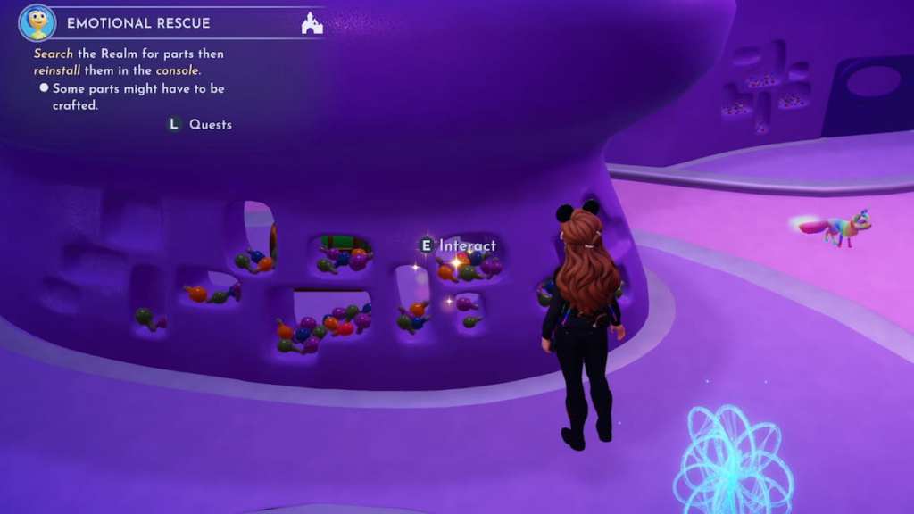 当你第一次进入《头脑特工队》领域时,第一个物品是一颗闪亮的钻石。当你寻找乔伊的控制台零件时,你会发现一个闪闪发光的小瓶架子,与它互动后,会掉落闪亮的钻石。请小心,因为钻石可能会在墙后生成,使其稍微难以发现。