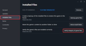 - 在安装的文件选项卡,单击验证游戏文件的完整性