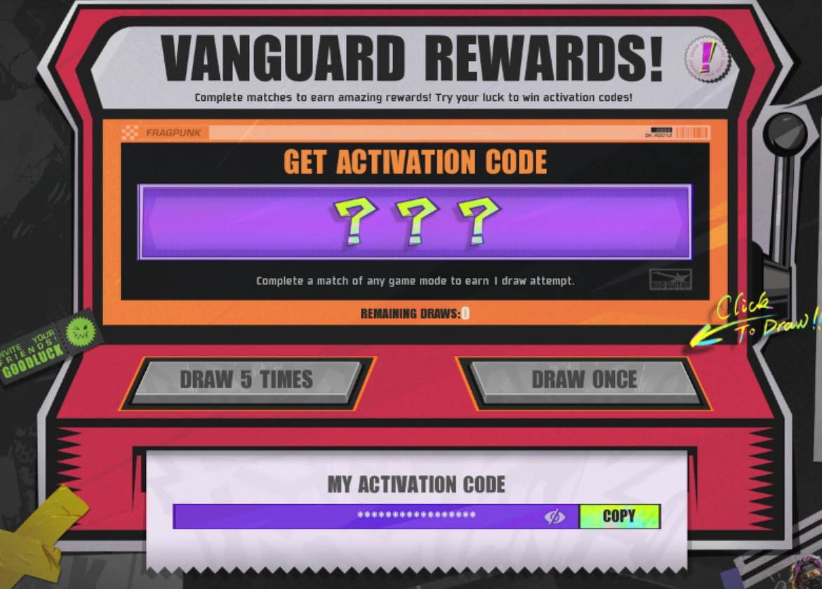 - 向你的朋友索取邀请:如果您有朋友已经参加了游戏测试,那么他可以在游戏中旋转“Vanguard Rewards”轮盘,有机会获得 FragPunk 的激活码。一旦您的朋友获得了代码,您就可以将游戏添加到您的 Steam 库中并与您的朋友一起玩。