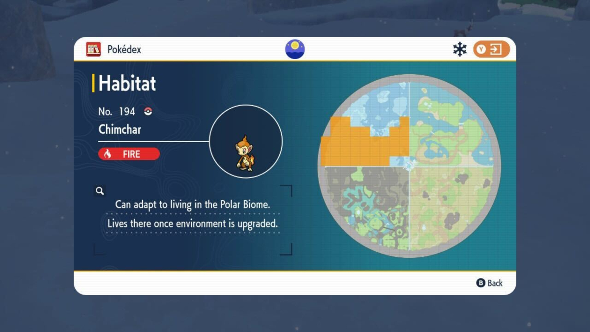 | 奇姆查尔 | Chimchar 有很高的机会出现在极地生物群落的南侧。 | ![]() |