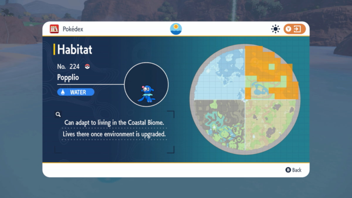 在《神奇宝贝猩红与紫罗兰靛蓝盘》中,一旦您升级了四个泰拉瑞姆生物群系之一——沿海、稀树草原、峡谷或极地- 一些入门神奇宝贝将开始在选定的位置生成。总共,每个生物群系将生成六只入门神奇宝贝,让您追踪它们在每个区域内的栖息地,我们已经为您完成了这项工作。