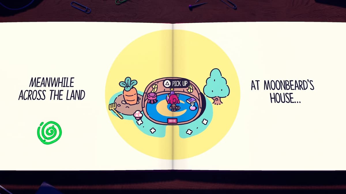 你遇到了一个被铁草封锁在入口处的洞穴。前往月胡子的房子(前 3 页)并获取一枚除草炸弹(是的,这位古怪巫师的客厅地板上放着一枚除草炸弹)。