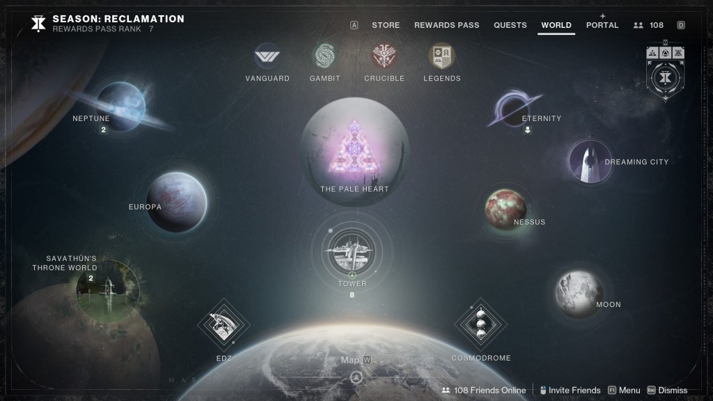 《命运边缘》对经典的“目的地”选项卡进行了重大降级。菜单的该部分确实不是包括开普勒,仍然存在的位置看起来极度不饱和。 《命运 2》的玩家已经习惯了著名的菜单,该菜单随着资料片和季节的推移而不断增长和变化。