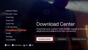 要开始导入选秀课程,请转至创建中心并点击 Madden NFL 25 主菜单中的下载中心。