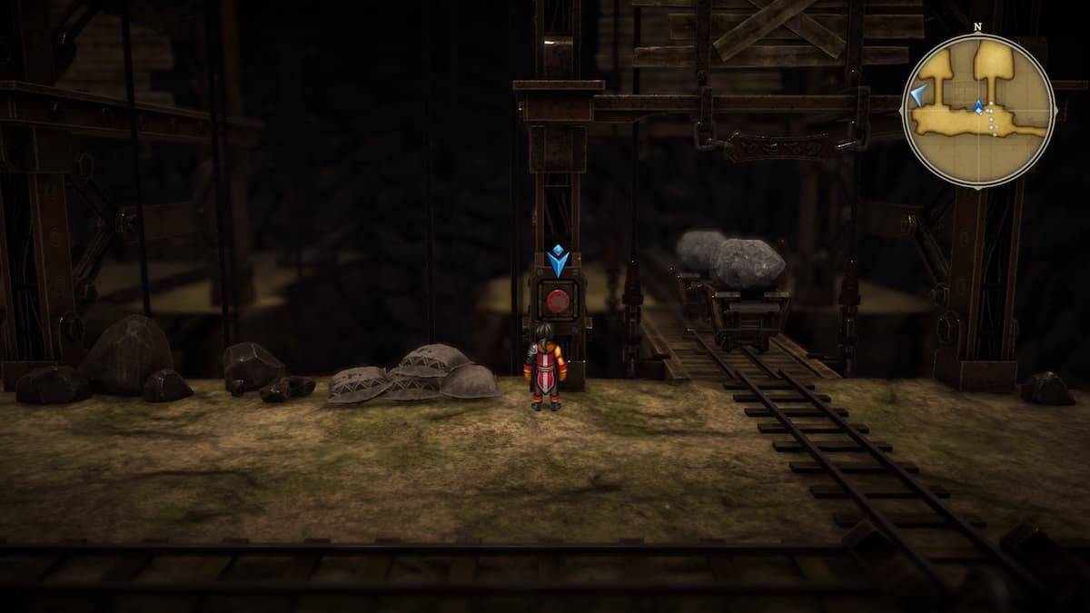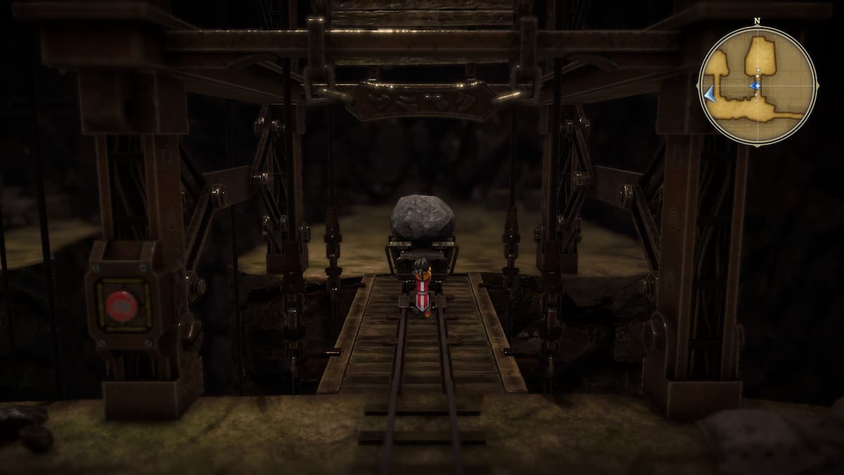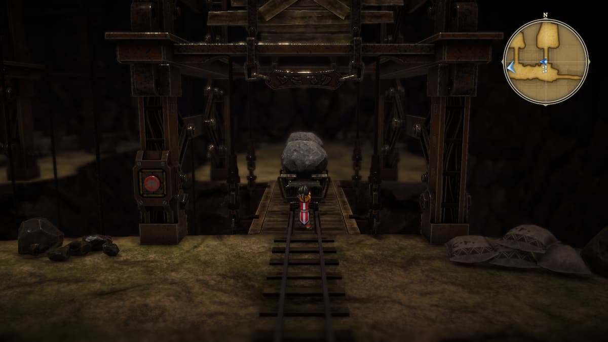 你的路线在废弃矿井的两个部分丢失了。要继续前进,您需要将电梯轨道移至另一侧。赛道需要一些额外的重量才能启动,然后你可以按下红色的大按钮。幸运的是,周围有一些矿车可以帮助您完成这项任务。