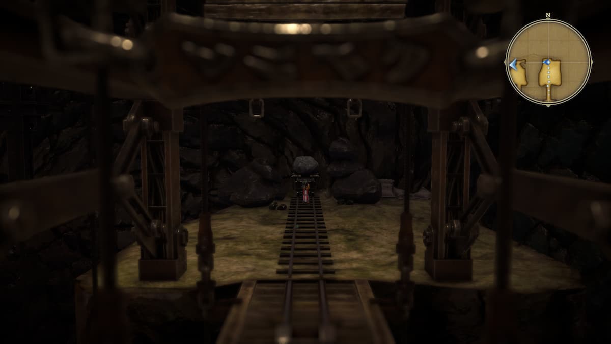 当两辆手推车都在电梯上时,您可以再次按下那个红色大按钮。电梯将降低并升高左侧的另一条轨道供您穿越。你将顺利穿过矿井,在那里你将面对柯根、扎比和尤瑟斯。