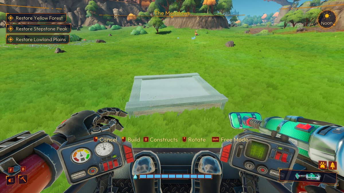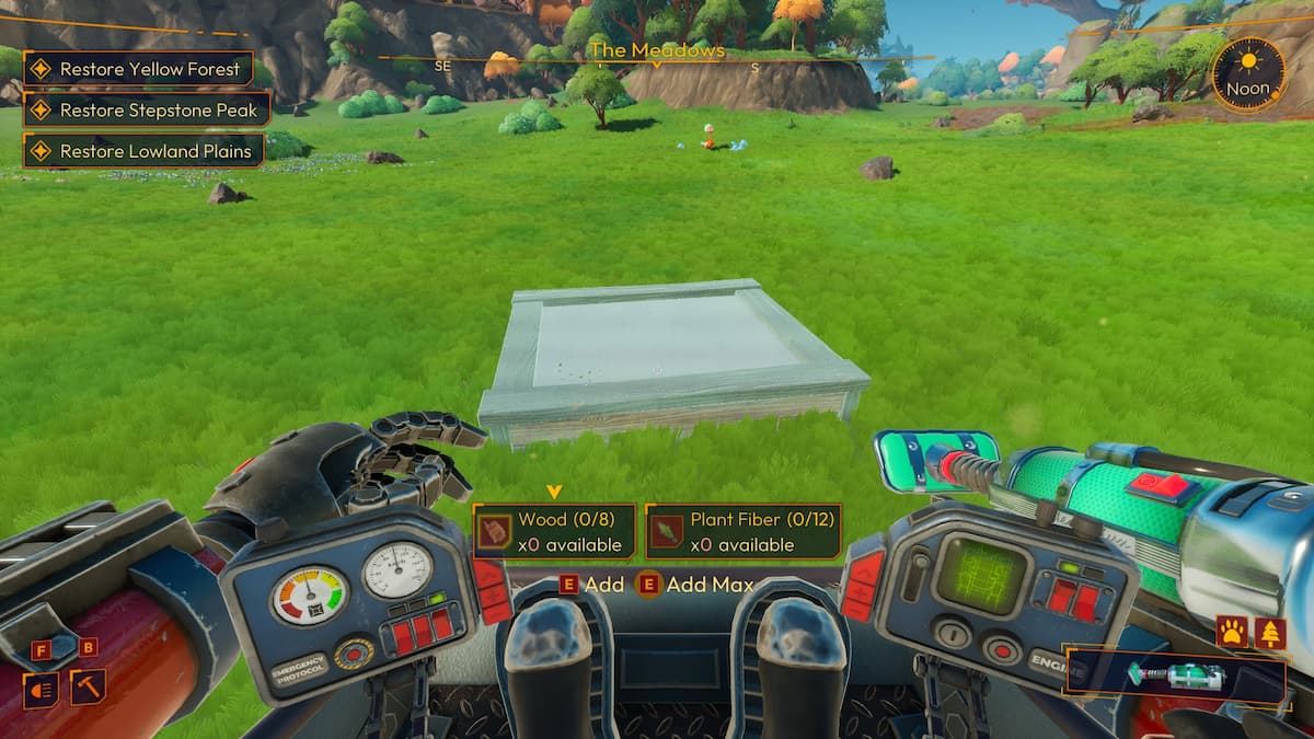 现在,您需要按鼠标右键 (RMB) 离开构建菜单。完成此操作后,接近地块并按住“E”键将所有需要的物品倒入其中并完成施工。如果您需要更多物品,您很快就会看到您应该得到什么。