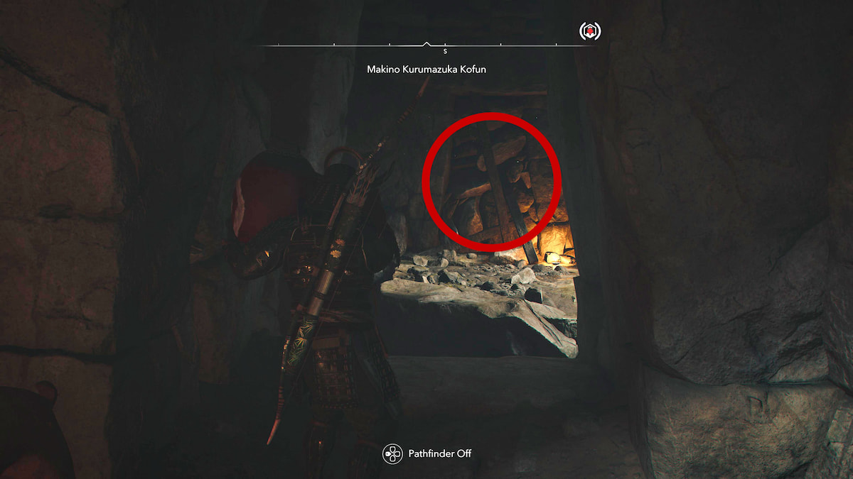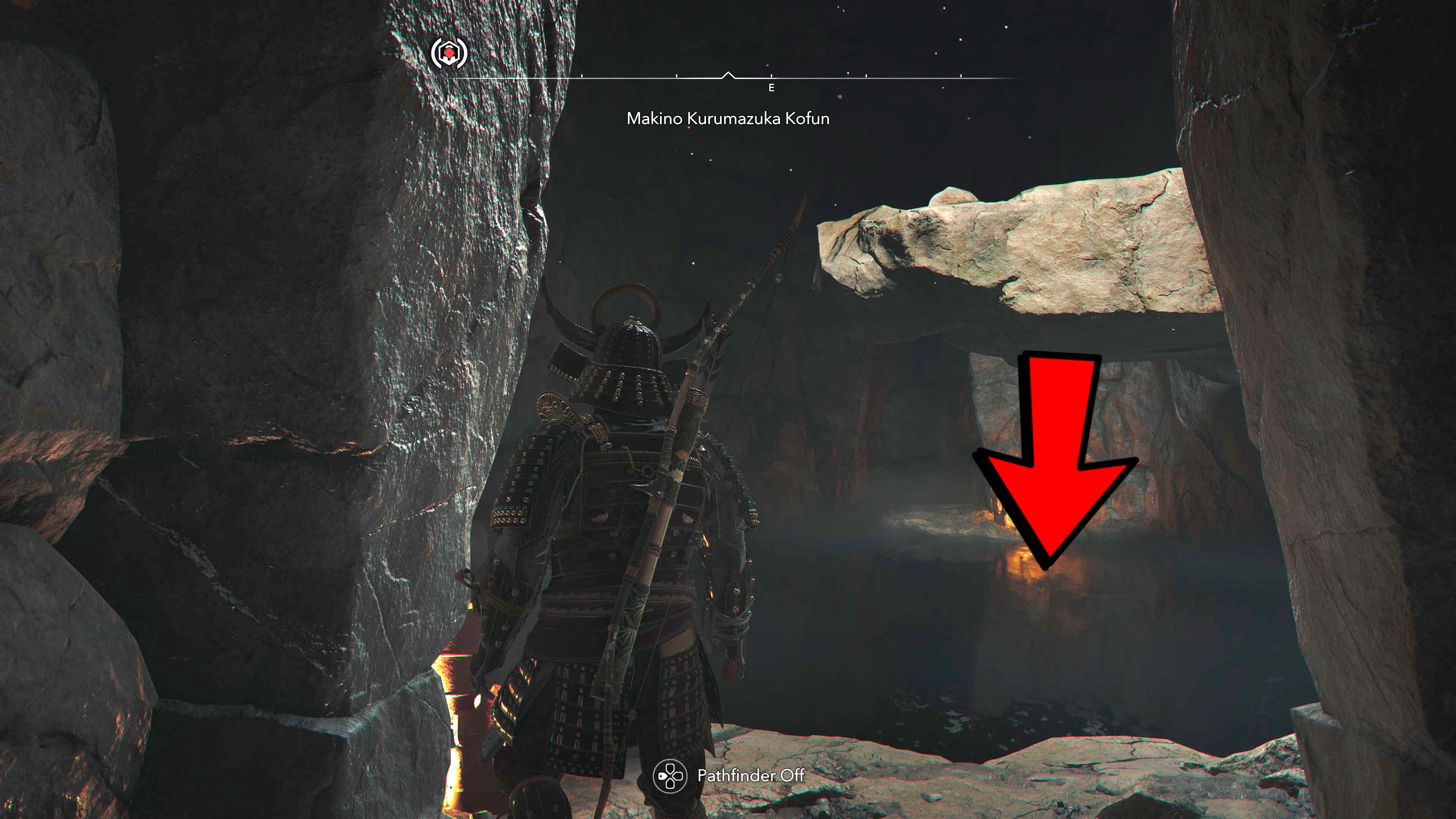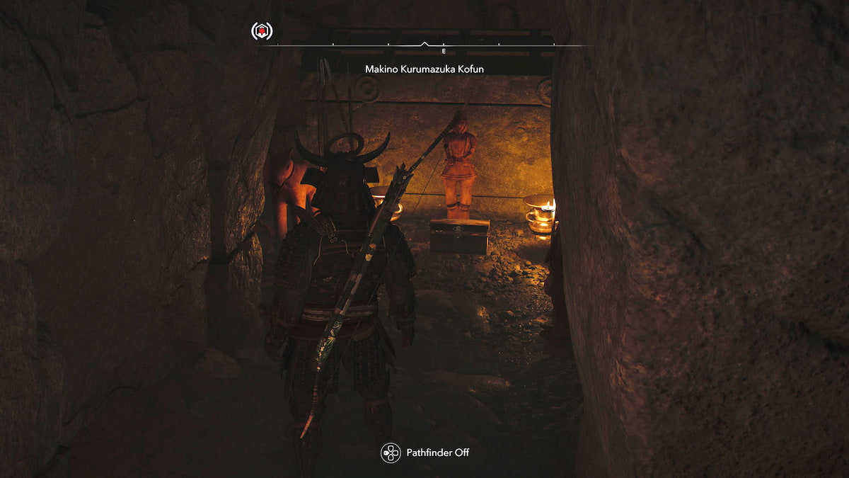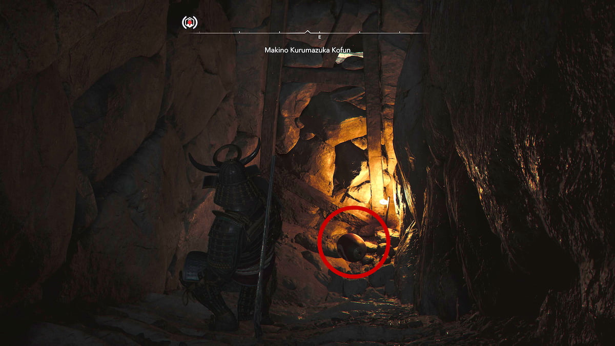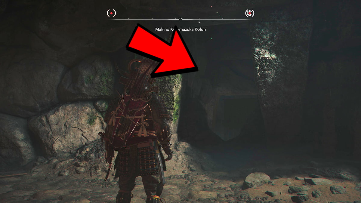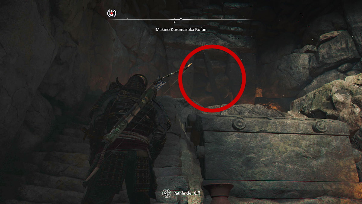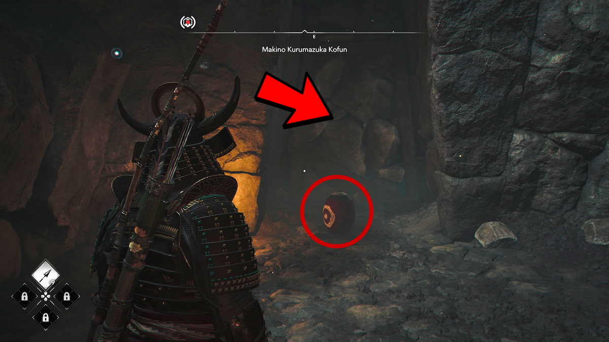 在山顶上,您会发现一组通往古坟的楼梯,入口处被岩石挡住。幸运的是,这里没有敌人徘徊,所以你可以自由探索。