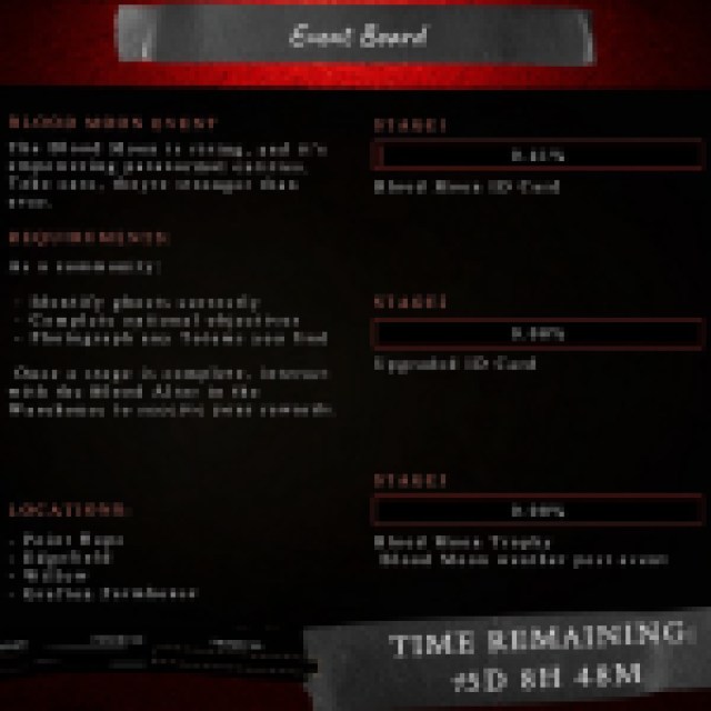 要查看活动板,请转至主大堂的货车入口并在入口左侧寻找一块木板。在这里您将看到多个挑战和事件,包括血月事件。