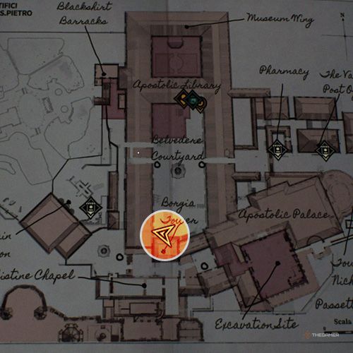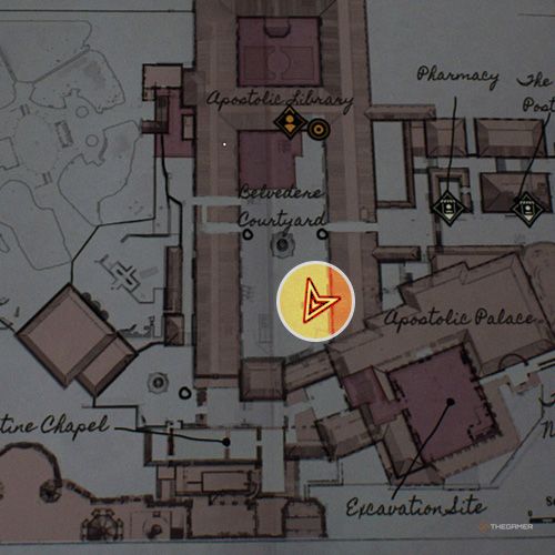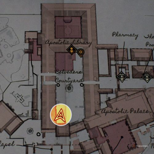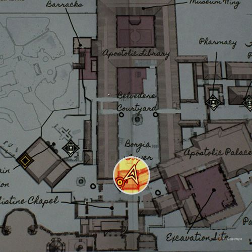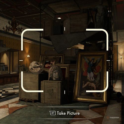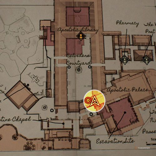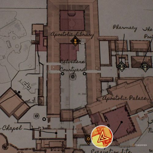 当你抵达使徒宫,你会发现一个类似仓库的房间,里面有“疯狂牧师”任务所需的日记。站在房间中央并拍摄被盗文物的照片。 | ||