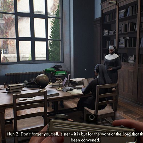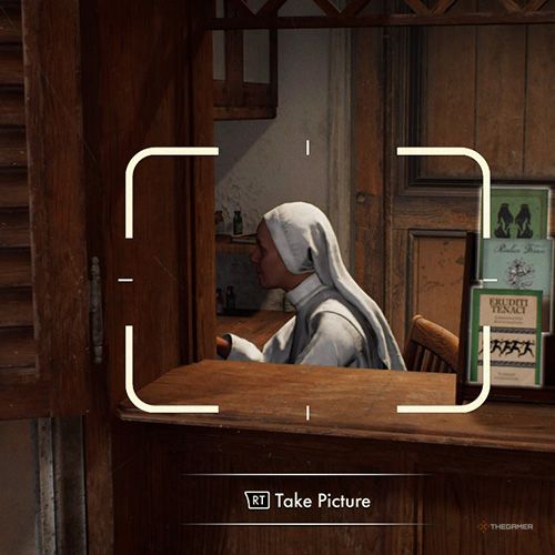 给女工拍完照后,下一层楼去进入图书室。在这里,你将寻找正在学习的修女——给他们拍张照片。 | ||