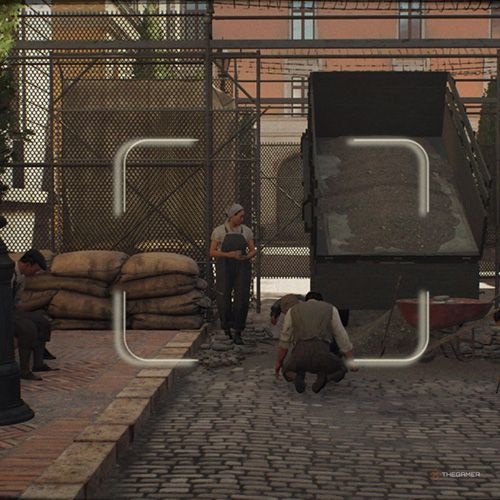 返回邮局然后进去。从窗户退出在大楼的后面。在这里,你会看到一个士兵带着一条狗在散步;此前,在进入邮局之前禁止进入该区域。不过,现在你可以在这条街上自由行走了。爬上低层建筑就在你退出的窗户对面,回头看看邮局。你会看到工人们正在粉刷邮局的上墙。拍他们的照片。除非你爬到屋顶上,否则你将无法捕捉到正确的角度。 | ||