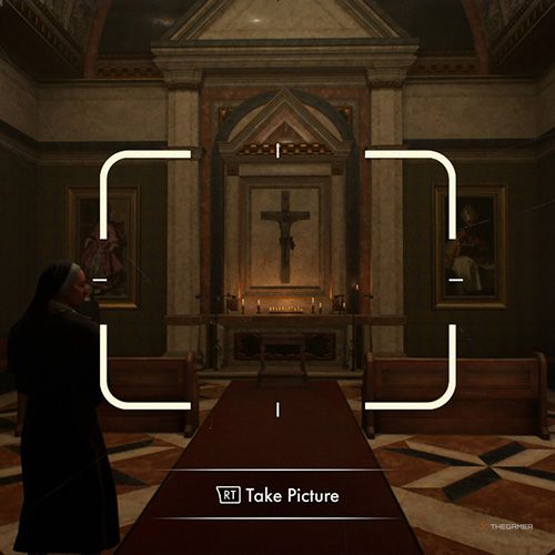 从地下出来后,你需要跟随开锁修女吉娜。这将带你回到挖掘之地。如果您还没有收集过,请务必收集该区域的奇怪铭文。那么,正如你继续跟随修女, 你会到达一座挤满了修女的小教堂。不要忘记拍一张教堂祭坛的照片。 | ||