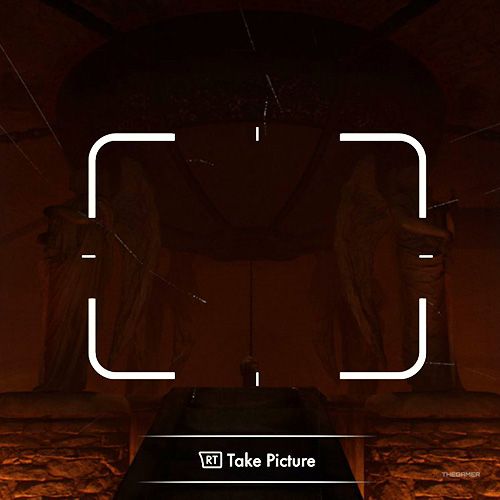 回到博物馆般的房间你穿过去得到了之前的奇异铭文。使用小铁门在这个房间里,你将能够给里面的其中一个雕像拍一张照片。 | ||