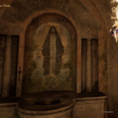 使用描绘耶稣基督的开关解决谜题后,您将进入类似墓地的区域。在这里,会有一个巨大的柱状房间,你会在这个区域的骷髅中找到一把钥匙。跳转到列的底部,您将能够拍摄耶路撒冷十字架的照片。 | ||
