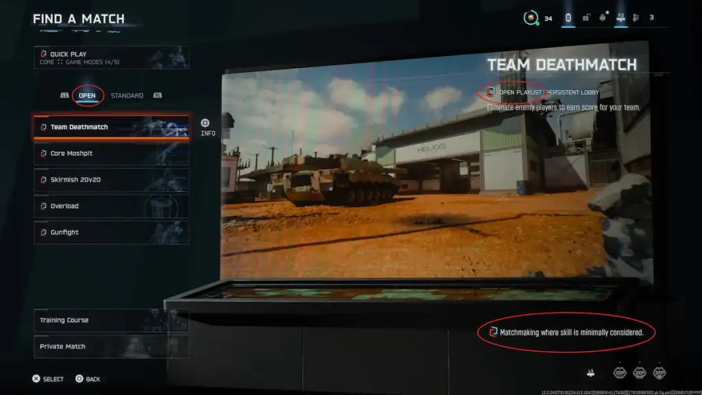 上图展示了没有 SBMM 的“打开播放列表”的图标,并且可以在多人游戏匹配菜单中在“打开播放列表”和“标准”之间切换。如果您想在没有 SBMM 的情况下播放,请在“打开”播放列表中播放。