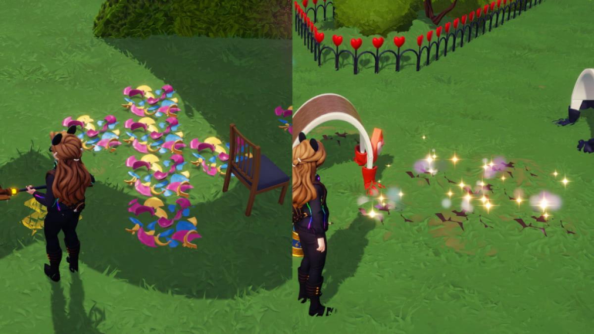 我们的清洁工作还没有结束。当你跑来跑去给玫瑰树浇水时,你可能会注意到地上有奇怪的洞和一些彩色的碎盘子。你的下一个任务是用你的皇家铲子和双手清理它们。您会发现花园中心的洞穴和茶几附近的破碎盘子。