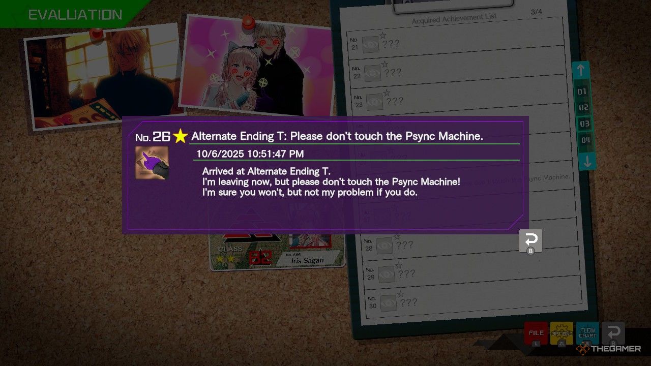 在游戏的成就菜单中(如果您在 Steam 上玩游戏,则完整列表会连接到您的帐户,但对于 Nintendo Switch 或 Switch 2 玩家来说,只有菜单屏幕上的日志中的点头)您看到的每个结局,以及看到您的第一个替代结局的额外成就。
