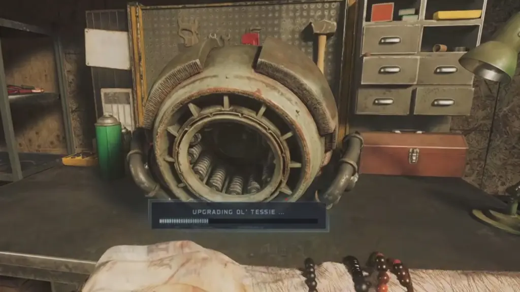 一旦将“诅咒之灰烬”添加到“Ol'Tessie”中,它就会变得更加方便。你将不再需要前往特定地点来升级你的武器。相反,只要站在 Ol'Tessie 的排气管附近,你就可以升级你喜欢的枪。