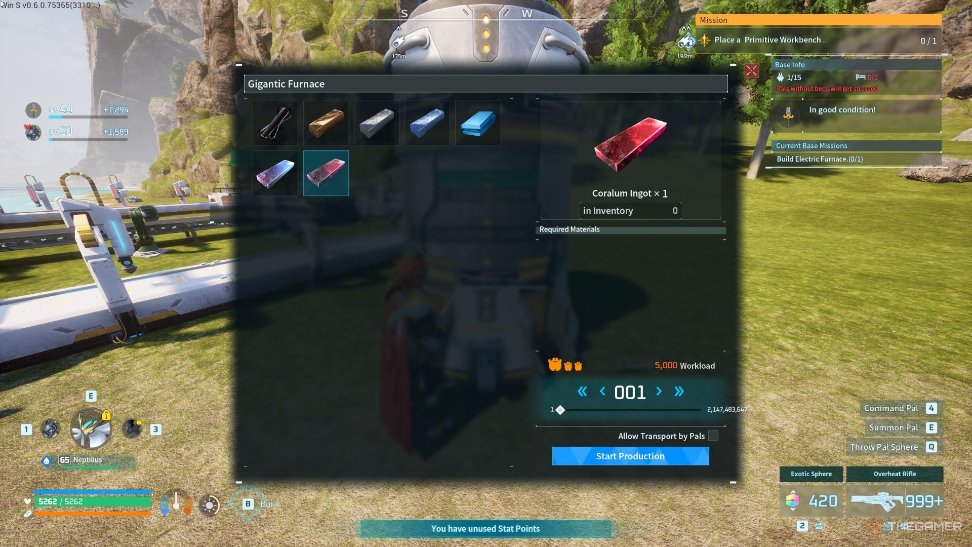 现在,如果您接近巨型熔炉,您将能够看到可以使用以下方法制作珊瑚锭5 珊瑚矿石、30 矿石和 20 煤炭,但就像游戏中的任何其他熔炉一样,你需要指定一个具有点燃技能的火型伙伴为了进行熔炉。