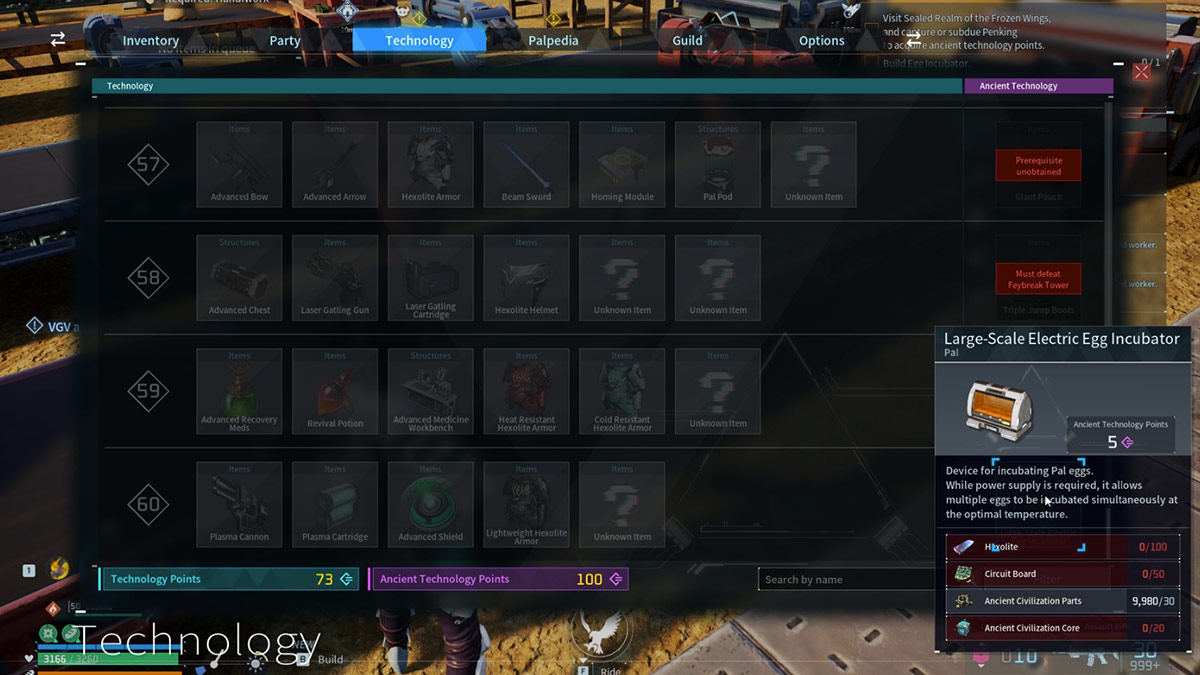 需要在 Palworld 中拥有一件或多件古代文明核心物品的完整物品列表