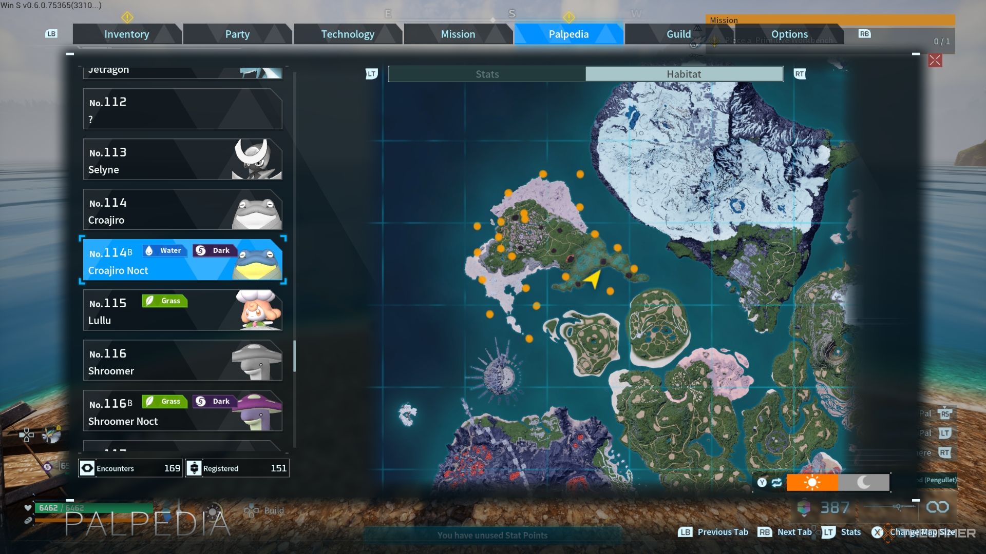 在这个岛周围,有多个钓鱼点,您可以在其中获得 Croajiro Noct,但最好的可能是来自樱岛——蘑菇湿地快速旅行点, 地图东南方。