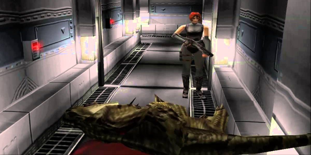 我还没有完成《恐龙危机》。我几乎没玩过《恐龙危机》。尽管如此,我对恐龙危机仍有非常清晰的记忆。我记得很清楚开头的内容。晚上你在外面的一个大围场内。你和另一个男人在一起,然后他走进一扇门,留下你一个人。
