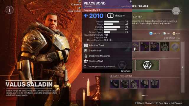 你可以通过以下方式在《命运 2》中获得 Peacebond:玩铁旗当它作为特色坩埚模式提供时。和平债券可以在比赛结束时掉落,或者您可以在解锁收藏中的手枪后将铁印痕集中在萨拉丁身上。