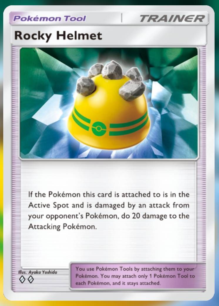 巨型斗篷和岩石头盔都很有用,但是你会想要 Exeggutor ex 上的 Rocky Helmet在大多数情况下。这会增加其芯片伤害并阻止对手在准备时进行低伤害攻击。