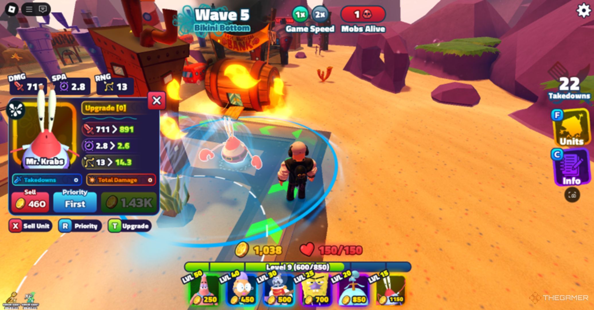 另一个高优先级塔是蟹老板,因为他拥有可用选项中最强的目标攻击力。当更强大的敌人和头目开始出现在后面的波浪中时,他的高伤害输出变得至关重要。