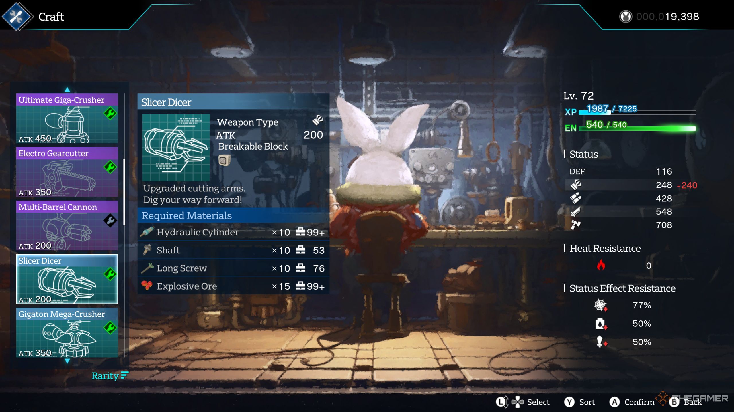 当你推进生锈兔的故事时,你最终会到达一个临界点,在跨越一个巨大的差距后,你会拯救雷克斯,这会让你获得更好的练习蓝图。当这种情况发生时,游戏会带你回到地面,并向你介绍 Stamp 房子里的制作系统。
