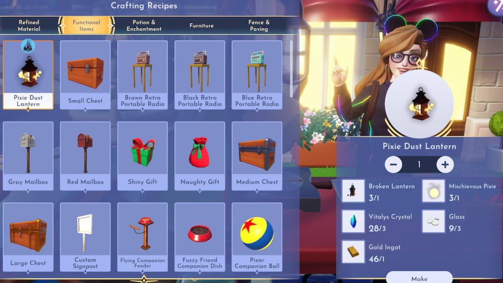 掌握所有可用资源后,前往任意制作站,导航至功能物品,制作精灵尘灯笼,然后返回骷髅岩。