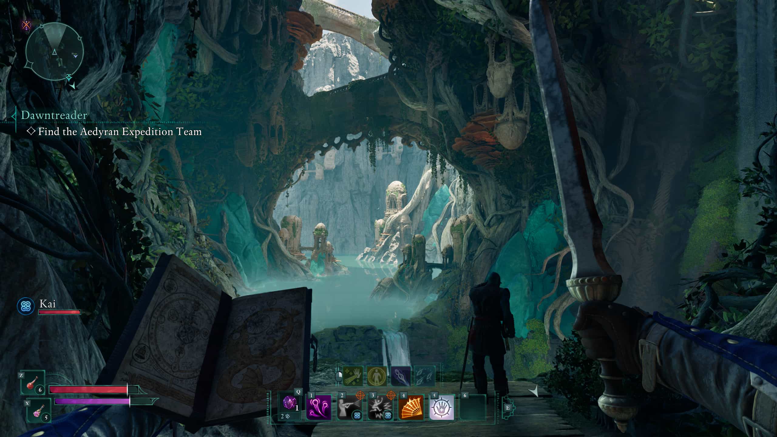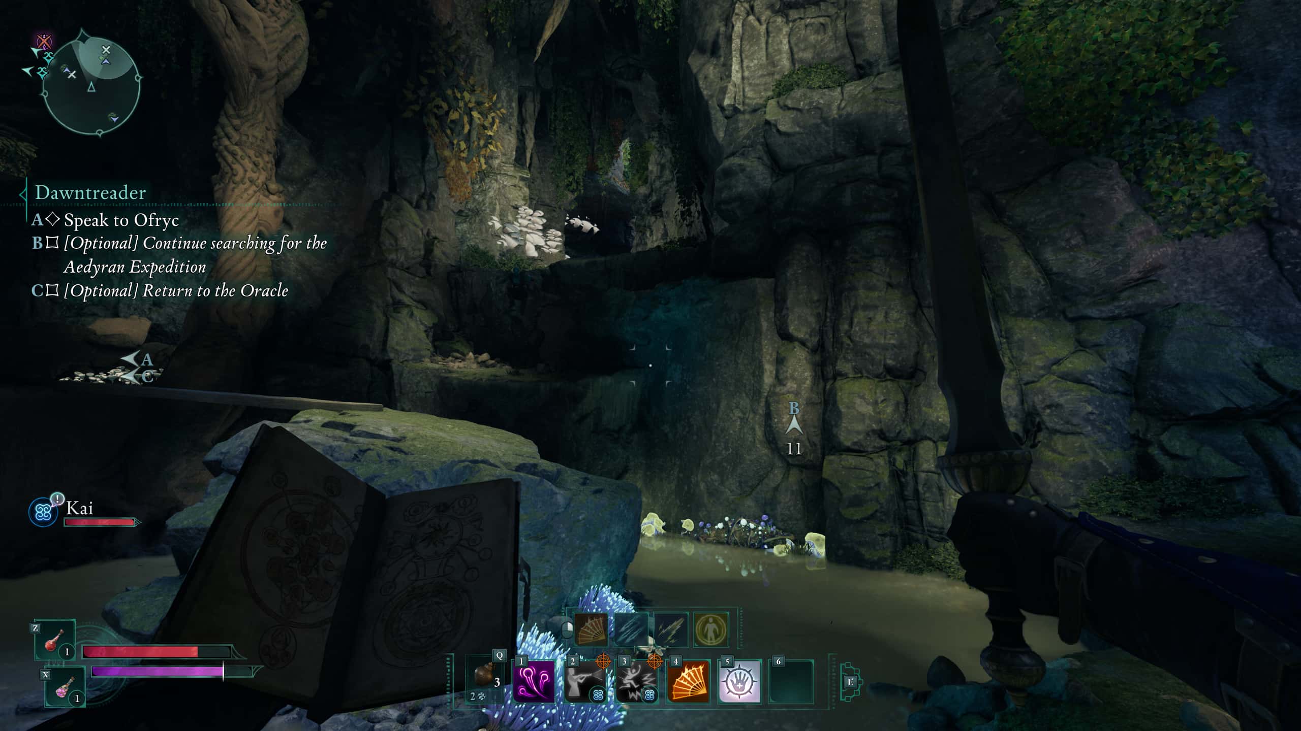 沿着洞穴小路前进,清除沿途的一些xaurips。最终,你会来到一片废墟,那里有一些带电的水。要么跳过它,要么直接穿过它,沿着后墙跑到楼梯上,然后爬上楼梯找到凯德蒙,他看起来很像奥弗里克,也有一些需要护理的伤。用药水或你从荆棘根之声那里得到的治疗之触力量来治愈他,他会告诉你他的探险队队长吉达,以及团队的其他成员,他们冲进废墟寻找神谕者,并与他谈论一些强大的圣物。强大的遗物?听起来像是有伏笔啊!