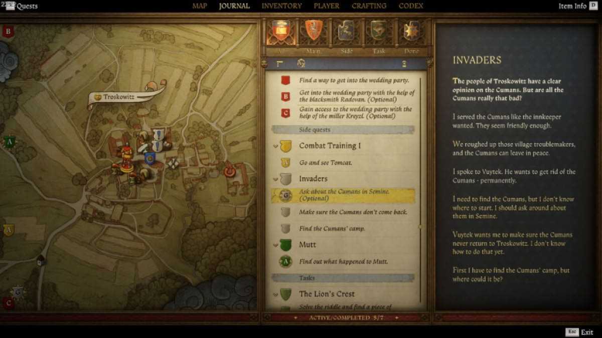 如果您检查《天国:拯救 2》中的日志,您会在“入侵者”部分看到一些新选项。你现在可以询问塞米纳的库曼人并尝试找到库曼人的营地,这样他们就不会返回酒馆并造成更多麻烦。您还可以与四个库曼人的首领瓦斯科交谈,了解有关他们的更多信息以及他们的去向。