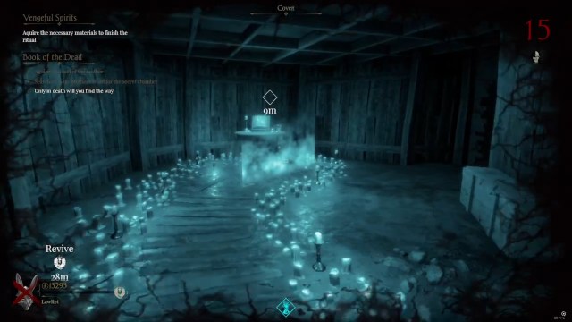 一旦你到达外面的仪式地点(如上图所示),你将开始复仇之魂任务三个目标来完成。你可以选择任何顺序,但我会在解决这些任务时解释它们。