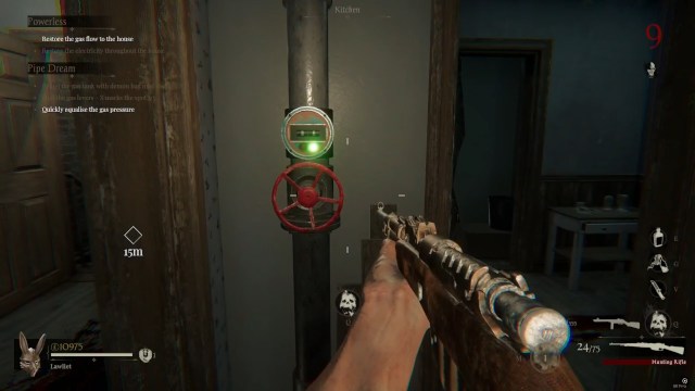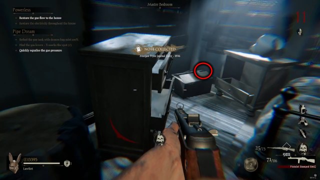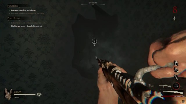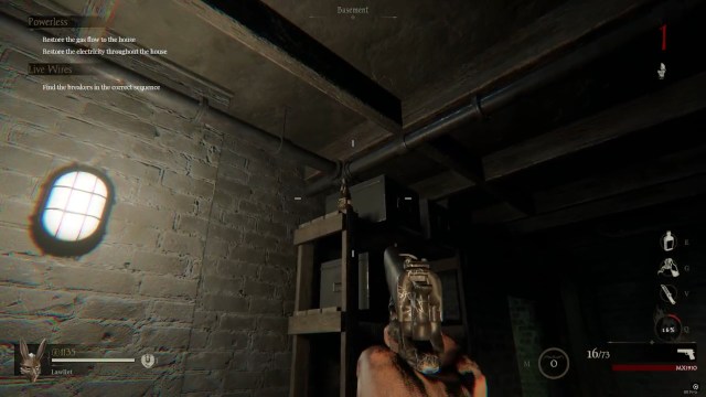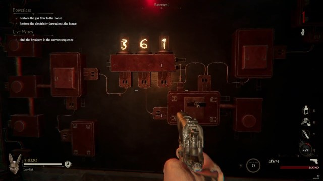 无能为力是一个由两部分组成的任务,第一个目标是恢复房屋供电。前往楼下的导航标记并与开关互动。您会在墙上看到三个数字(如上图所示)。您必须找到并按匹配顺序翻转这些开关。我的订单是“361”但你的可能会有所不同。