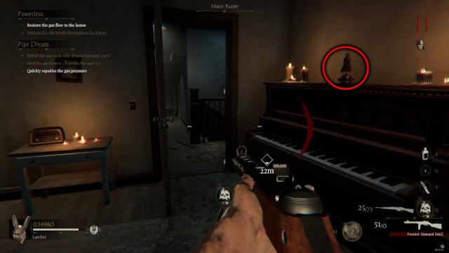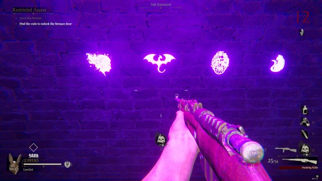 我在一楼的休息室(如上图所示)找到了我的一个,另一个在楼下的走廊,还有一个在楼上的主卧室。Sker 中的大多数谜题都是随机的,因此预计位置会混乱。一旦你按顺序击中断路器,就返回地下室。