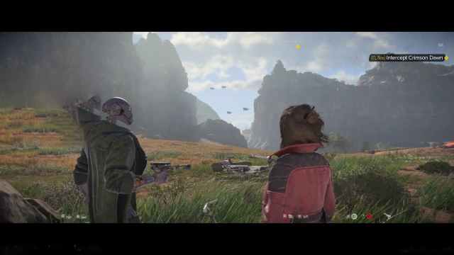 滑进草丛里穿过它,直到到达小营地后面的区域。在所有的骚动中,你可以派 Nix 去拿小桌子上的数据板在中间和偷偷溜回你来时的路。如果一切顺利,当你跳上飞行器并摆脱闪避时,争吵就会结束。