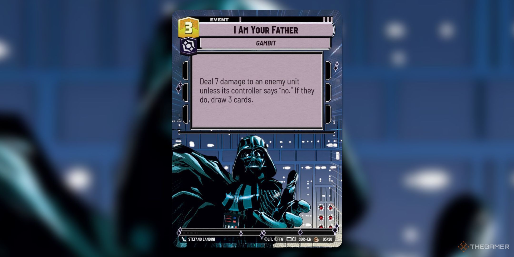 《我是你的父亲》重现了《星球大战》中最大的揭露内容之一。虽然这句话不再是一个令人震惊的转折,但它在流行文化中被反复引用,并在更现代的模因时代之前迅速传播。这张卡捕捉到了那个标志性时刻,但也有规则让你的对手与你一起角色扮演这个重要时刻。