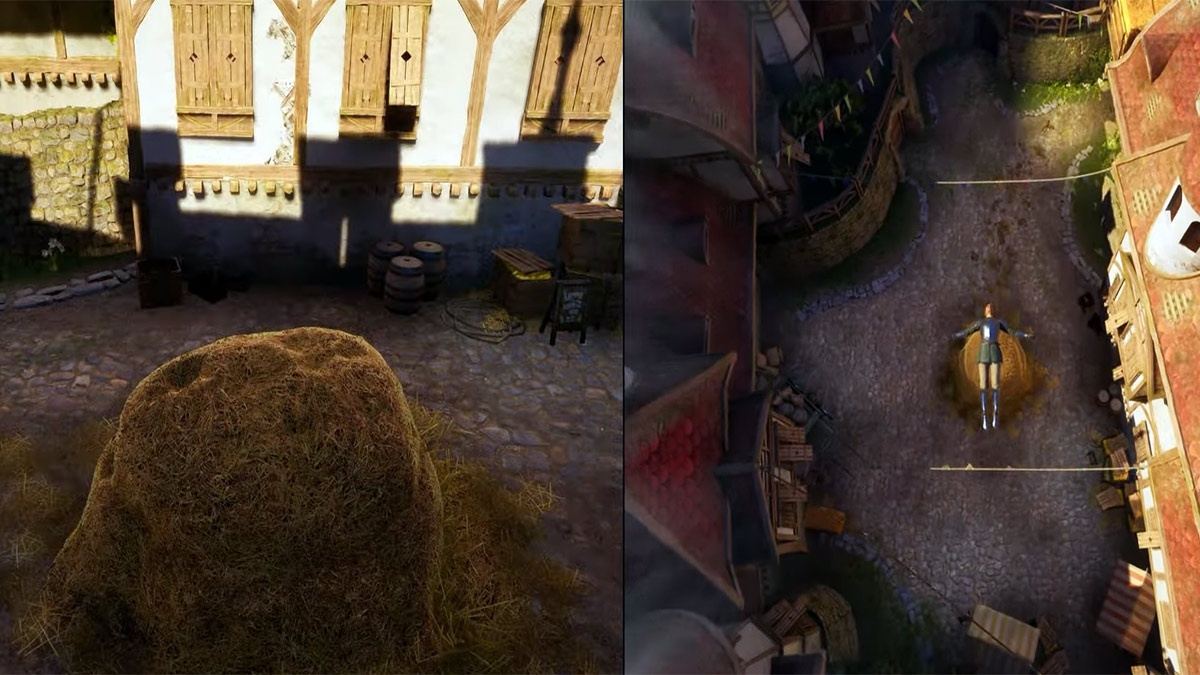 当然,这是参考了《刺客信条》系列中快速安全地跳楼的经典方法,这种方法自该系列的第一个作品以来就一直存在。显然,Hazelight Studios 是埃齐奥和戴斯蒙德·迈尔斯冒险的粉丝!