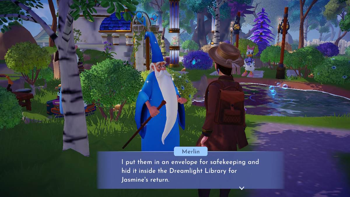 贾斯敏注意到日记封面上有一个代码。她需要时间来解码其内容,这使得魔法之花任务结束。但别担心——与此同时,迪士尼梦光谷还有很多事情等着您去做!