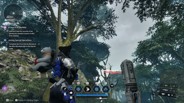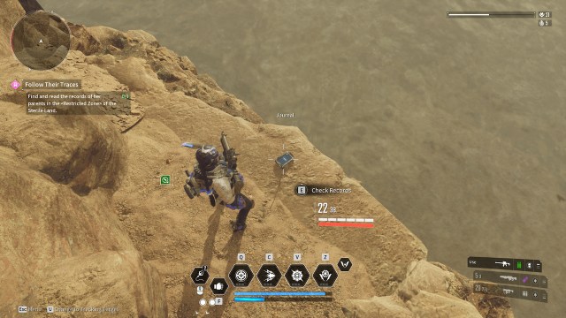在禁区里有一个名为“高能干扰机”的任务,在最近的悬崖上可以找到一本蓝色的小日记,正好找到我在下图中的位置: