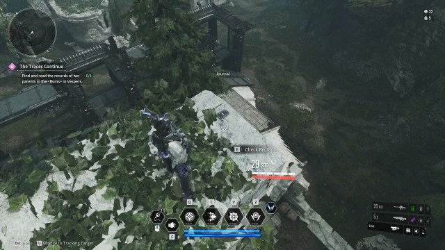 一旦你到达虚空碎片,你就会注意到它后面有一片废墟。走过柱子来到平台上抓钩到最顶部。走到专栏的末尾,您会在边缘看到日记,就在下面地图中的这个位置: