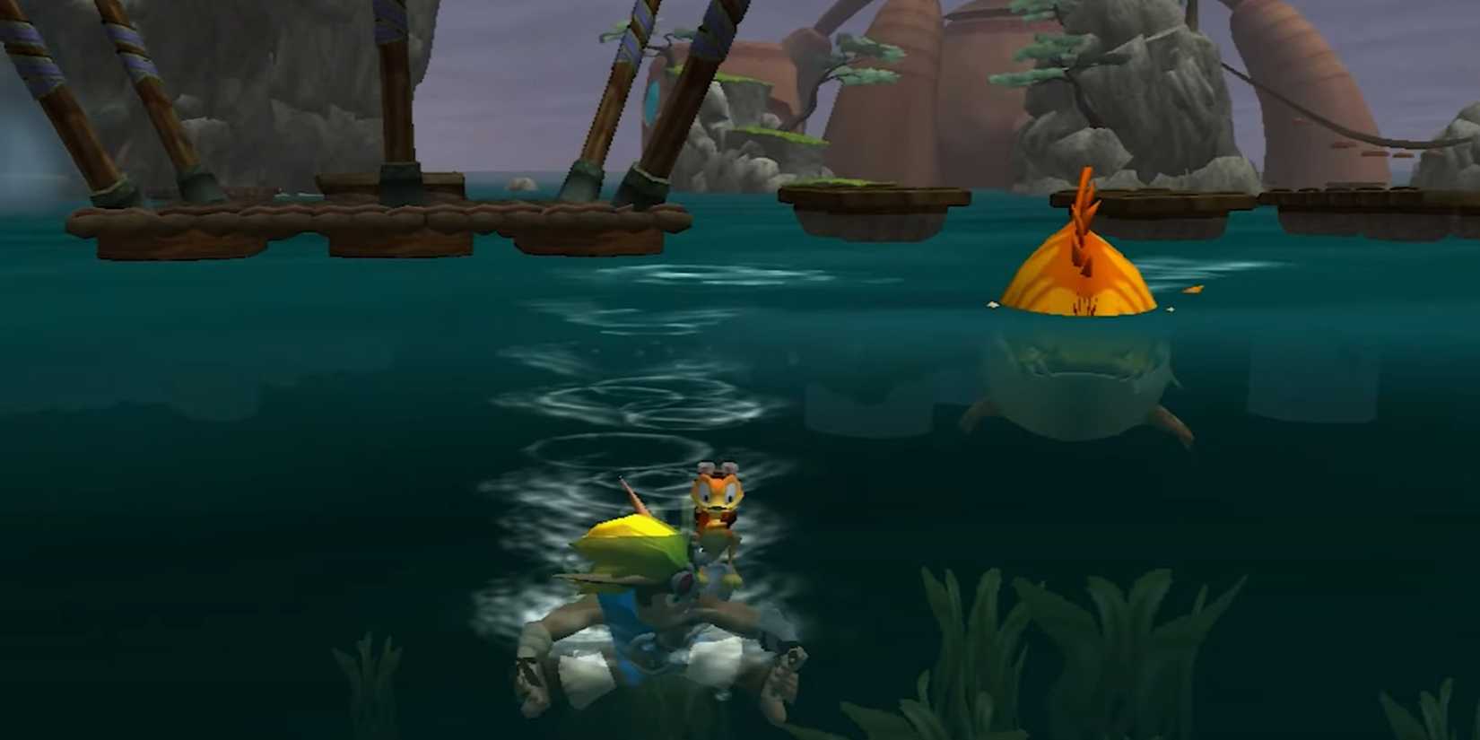 在杰克和达克斯特的第一次大冒险中,有些地方是禁止你进入的。其中之一就是公海,以及岩石村的其他水域。在这些浑浊的水域中潜伏着一种相当可怕的威胁,那就是潜伏鲨。游得太远,你距离被吞没只差一个心跳。