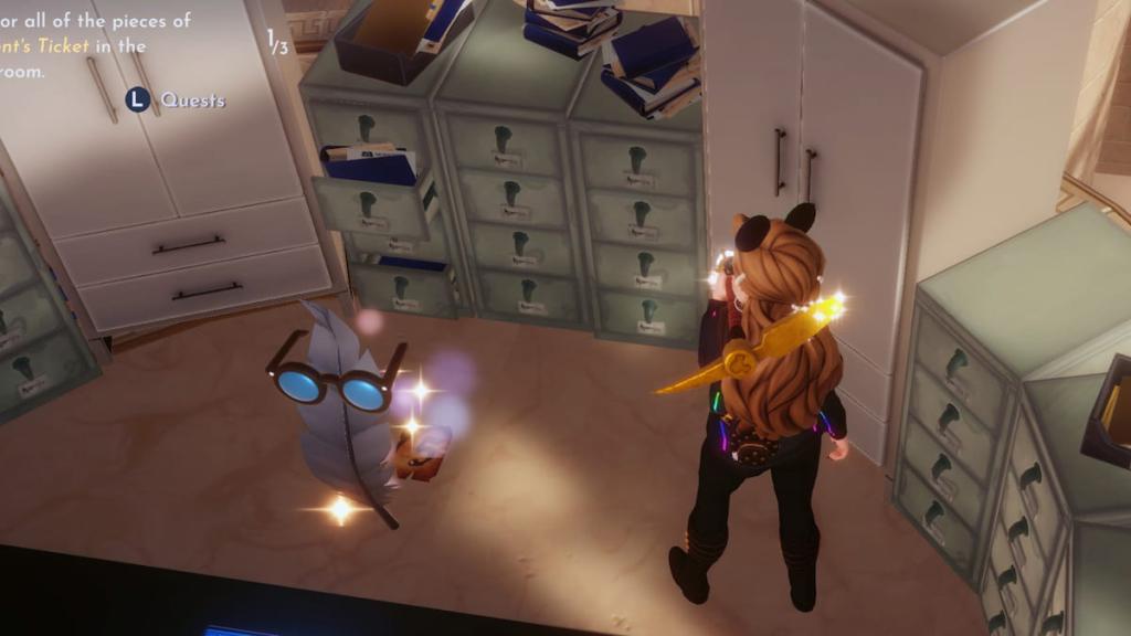 使她平静下来后,您将与魔术鹅尔(Magic Quill)交谈,魔术师通过各种企业术语表明,他们无法立即修复擦除。取而代之的是,您需要通过选票排队等待。您会很快了解到Maleficent也做了同样的事情,导致她愤怒地撕开了票,将其碎片扔到地板上。